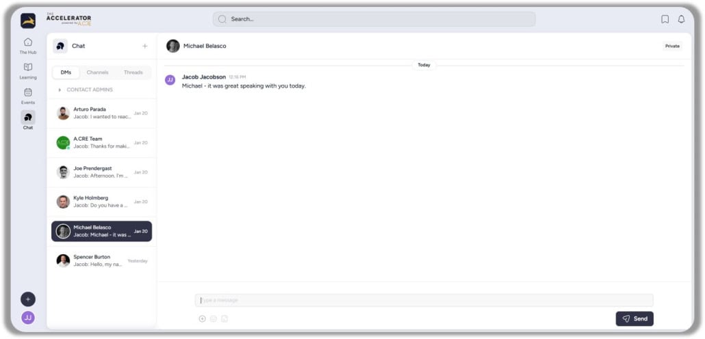 Accelerator 3.0 also emphasizes the importance of networking, recognizing that building connections is vital for career advancement in commercial real estate. The new platform includes community and networking features such as enhanced user profiles, direct messaging, and opportunities to engage with other members during live events like AMAs and company info sessions. These tools are designed to help you expand your professional reach, collaborate with like-minded individuals, and build meaningful relationships in the industry.