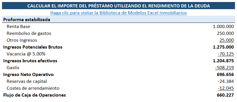 Importe del préstamo = Ingresos netos operativos ÷ Rendimiento de la deuda
