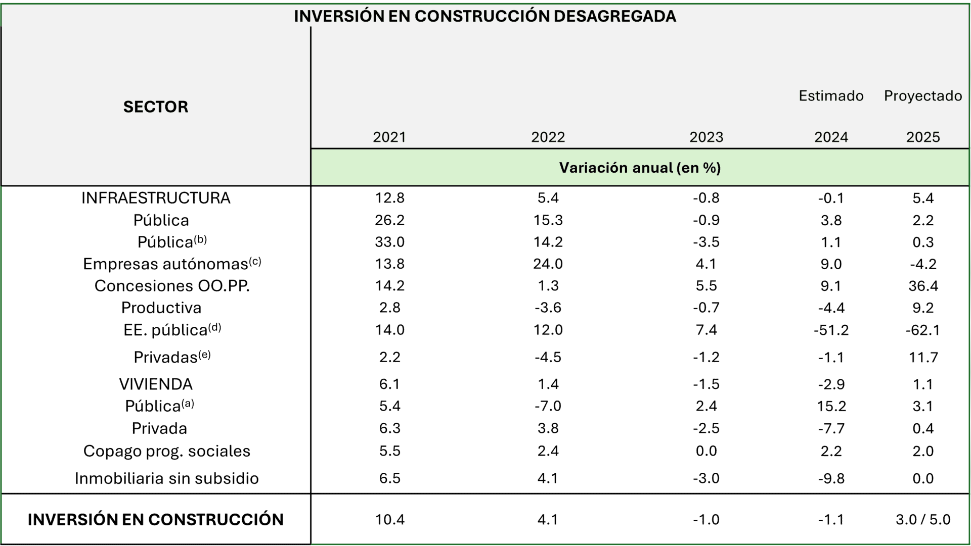 A pesar de estos desafíos, se espera que la inversión en vivienda crezca un 1,1% en 2025, con un alza del 3,1% en Vivienda Pública y un leve incremento del 0,4% en Vivienda Privada, aunque aún se mantendría por debajo de los niveles históricos.