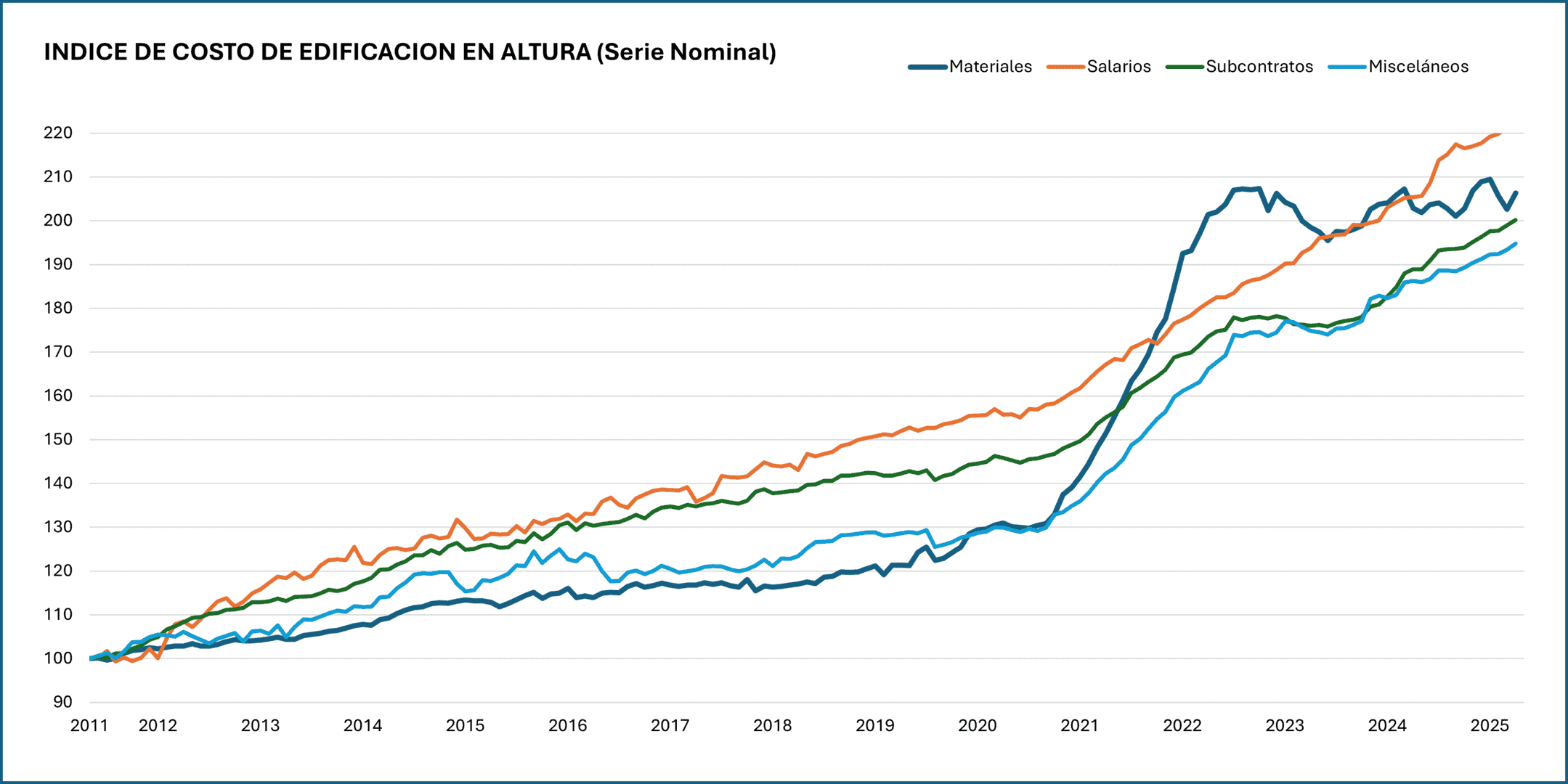 Gráfica: INDICE DE COSTO DE EDIFICACION EN ALTURA (Serie Nominal)