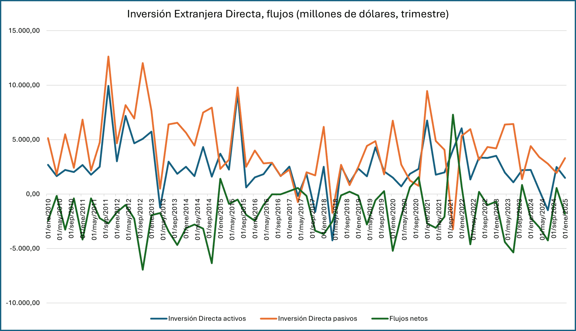 Gráfica: Inversión Extranjera Directa, flujos (millones de dólares, trimestre)