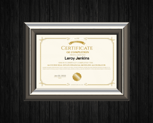 This certifies that the following individuals have successfully completed the 17-course, A.CRE real estate financial modeling Accelerator. Having shown a proficiency in all aspects of real estate financial modeling and having demonstrated an…