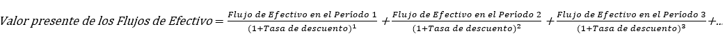 Su aplicación es bastante directa, en primer lugar, se estiman los flujos de efectivo proyectados, luego, se descuentan a una tasa de descuento determinada para determinar el valor de los flujos de efectivo en el presente, y finalmente, se suman los flujos de efectivo para determinar el precio de compra actual. Excel nos proporciona una función para calcular el valor presente (precio de compra) directamente.