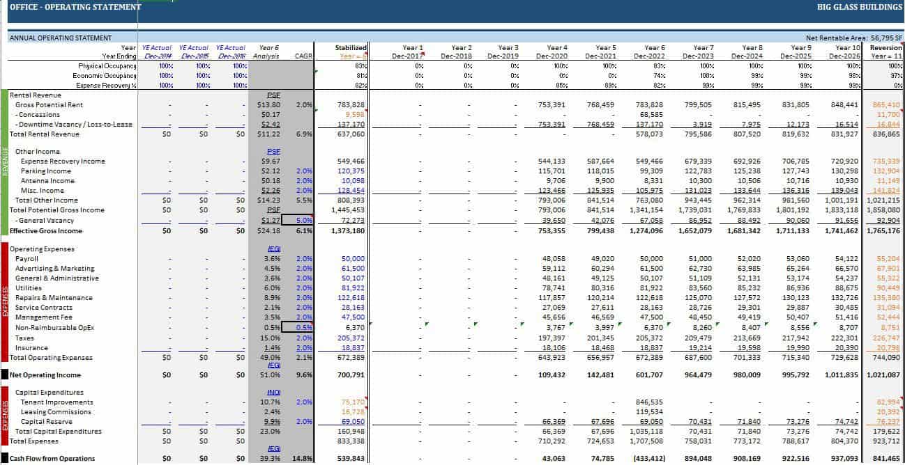 The Operation section contains the meat of the underwriting. This section currently is only compatible with industrial, office, retail, and multifamily property types but will be expanded to include other property types such as student housing, senior housing, self-storage, and manufactured housing.