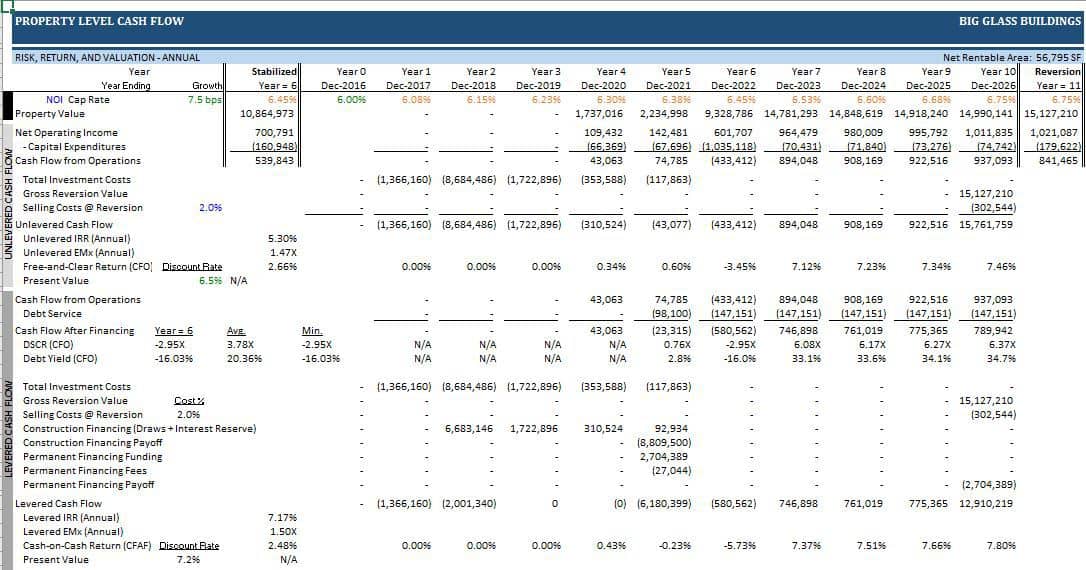 - Added ground lease payments below NOI; figured into DSCR, DY, CoC, IRR, and EMx calculations