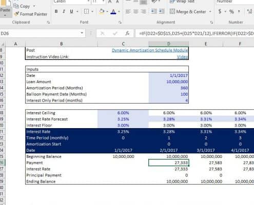 This is a dynamic amortization schedule for debt that gives the user the capability to model a loan with an interest only period up front and an amortizing floating rate debt repayment period once the interest only period is over. This module…