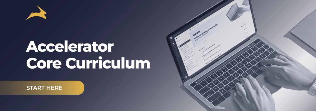 Starting Your Journey: From The Hub, click ‘Go to Core Curriculum’, and begin with the ‘Getting Started with the Accelerator’ course to kick off your learning experience.