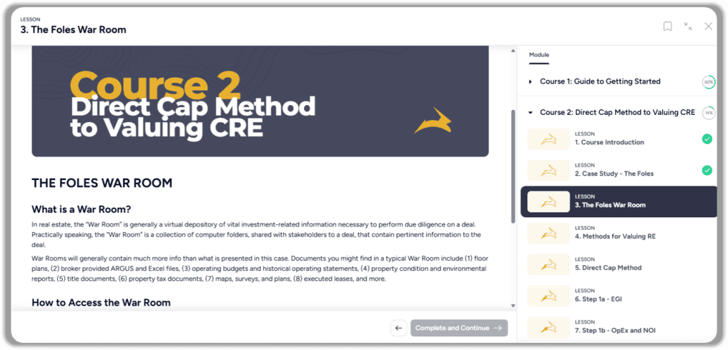 For many of the case studies, this hypothetical firm shares a link to a deal War Room where you’ll find realistic looking offering (or financing) memoranda, operating statements, rent rolls, and other deal-specific documents.