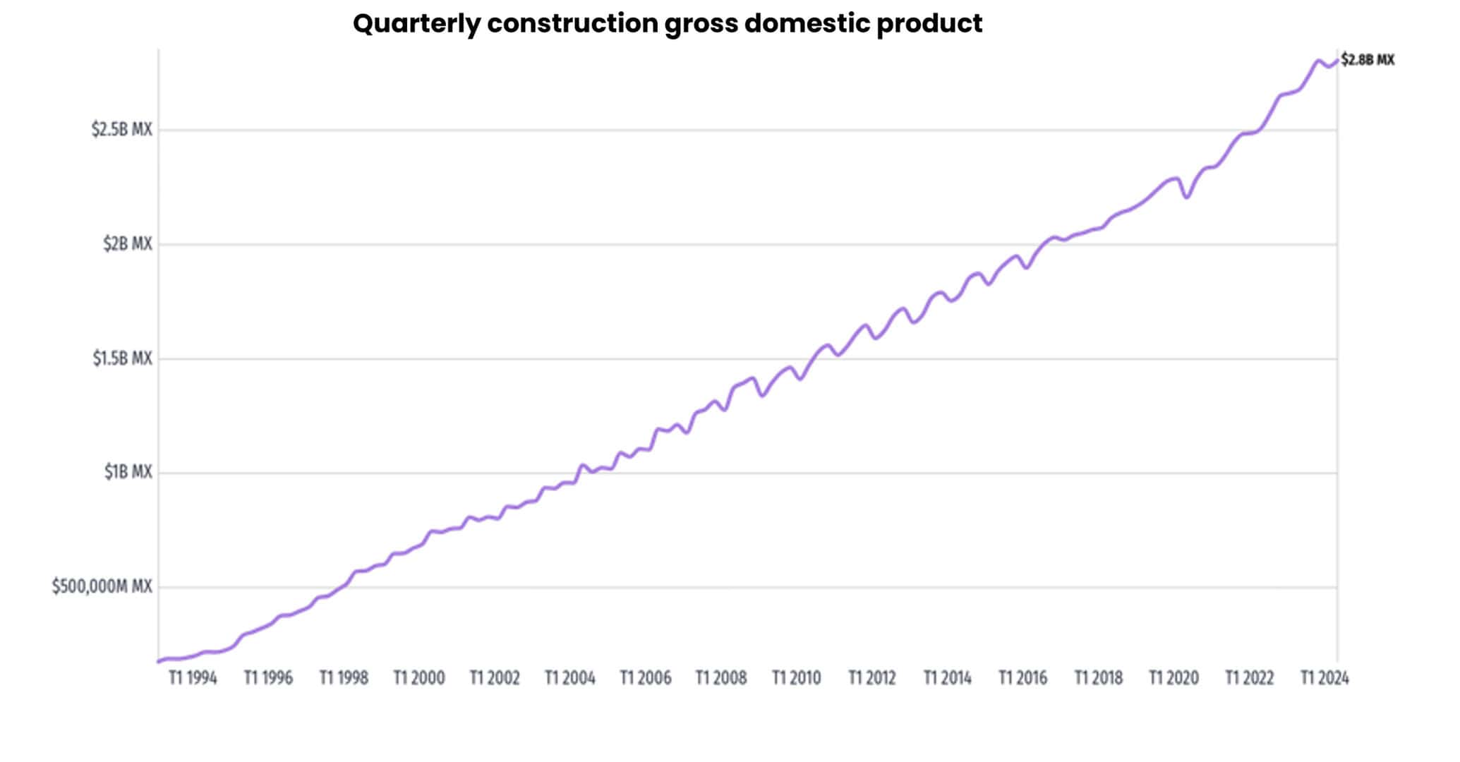 However, it is important to note that the construction sector has experienced fluctuations in its growth. During the third quarter of 2024, the Gross Domestic Product (GDP) of construction showed a marked slowdown, going from a solid annual growth of 7.1% in the third quarter of 2023 to 0.4% in the same period of 2024.