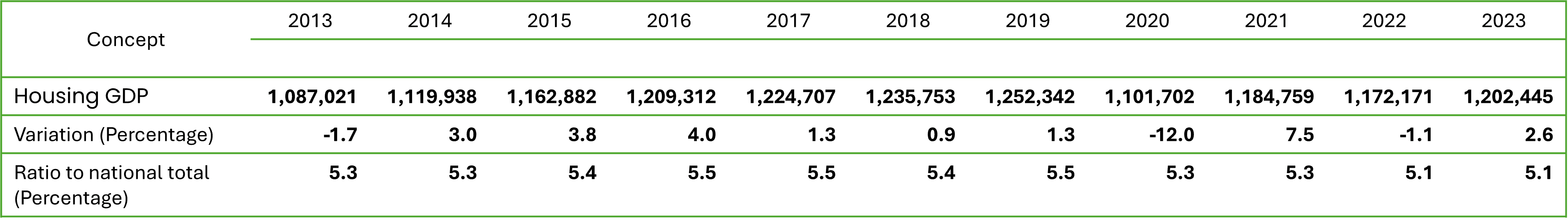 - New housing showed a 9.2% increase in its annual value, driven by the shortage of supply in consolidated urban areas and the increase in land prices.